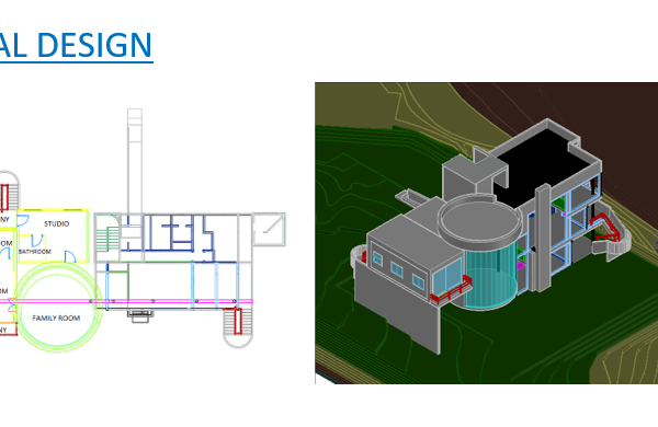 This project explores the fit of three-dimensional massing and ordering systems as the design generator in the sense of existing forms and three-dimensional systems. The established Smith House structures that have been extruded is used as a design starting point.